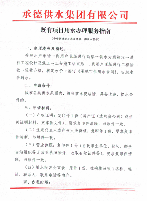 既有項(xiàng)目用水辦理服務(wù)指南